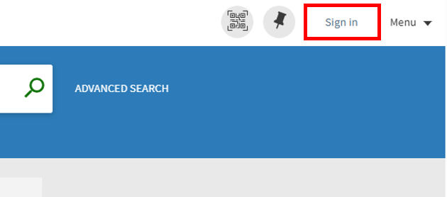 1. On the Library Catalogue, click "Sign in" in the top right corner. 於圖書館目錄頁面,點擊右上角的 “Sign in”.