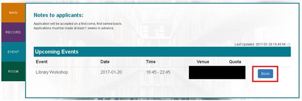 在登入預約系統後,點擊左側“event”按鍵。選擇你想要參見的活動即可進行預約